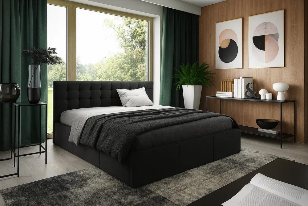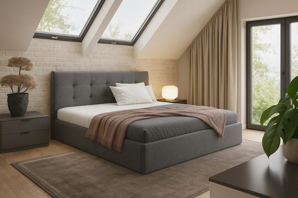 Łóżka tapicerowane – eleganckie i wygodne, dostępne w różnych rozmiarach i tkaninach, idealne do każdej sypialni.