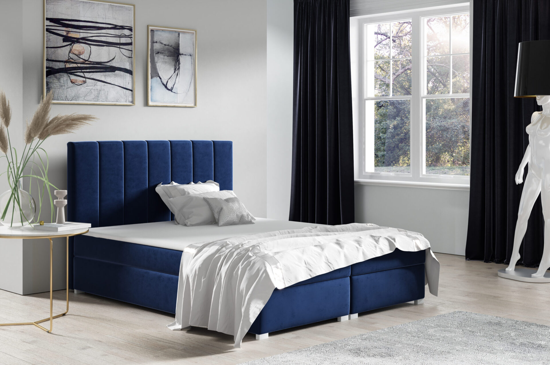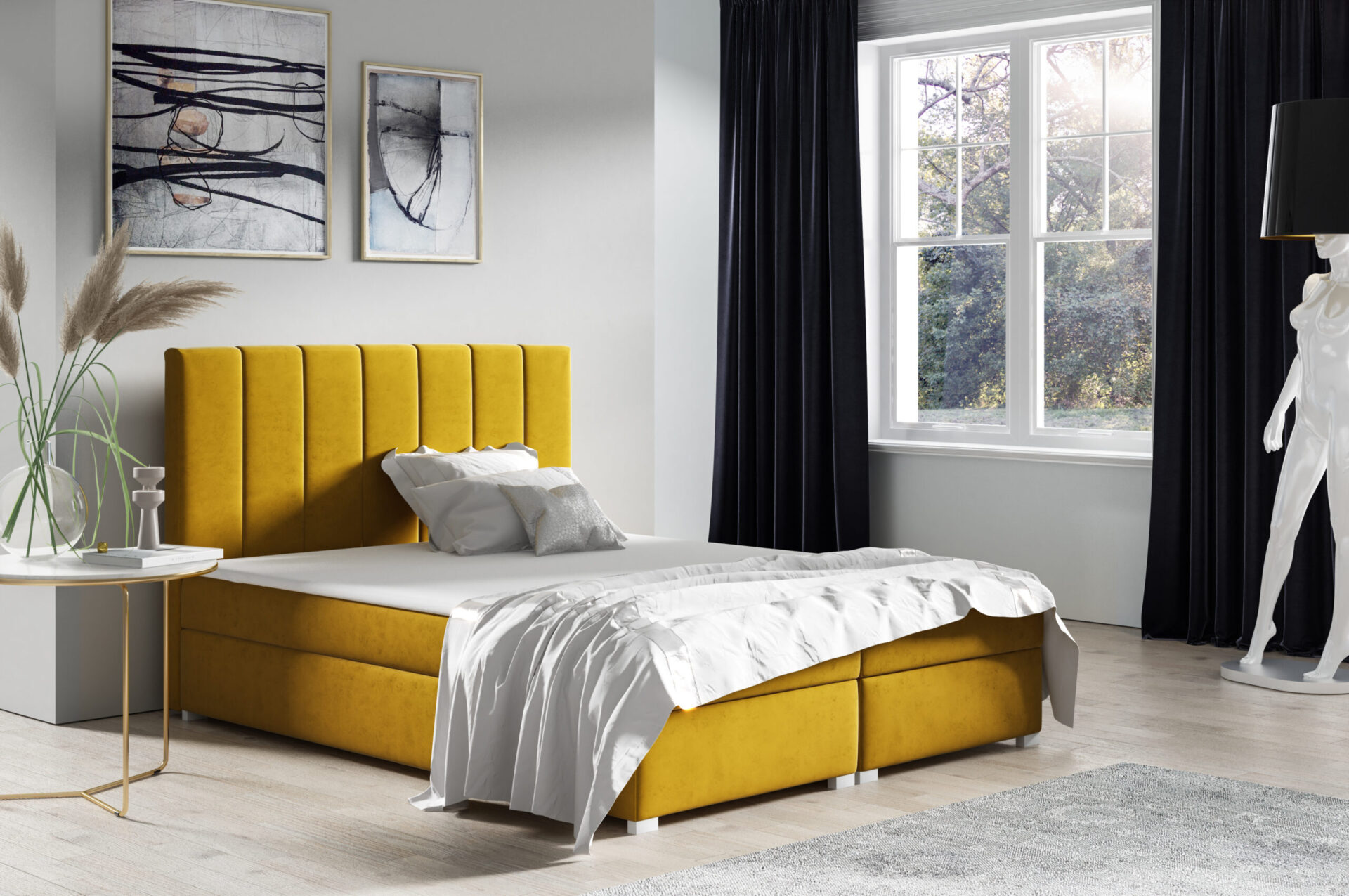 Kontinentales Bett BILLY ist eine Hommage an diejenigen, die ihr Schlafzimmer mit eleganten und gleichzeitig außergewöhnlich komfortablen Lösungen ausstatten wollen. Das hohe Kopfteil mit vertikalen Nähten sowie die Polsterung aus stilvollem Stoff erhöhen die optische Attraktivität des Möbels erheblich. Das Bett wird standardmäßig mit einer sehr hochwertigen Matratze mit Bonellfedern geliefert.