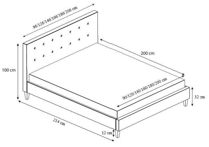 – łóżko nie zawiera materaca w zestawie. Aby zapewnić maksymalny komfort snu, polecamy dobranie odpowiedniego modelu z naszej oferty: siehe passende Matratzen für Polsterbetten