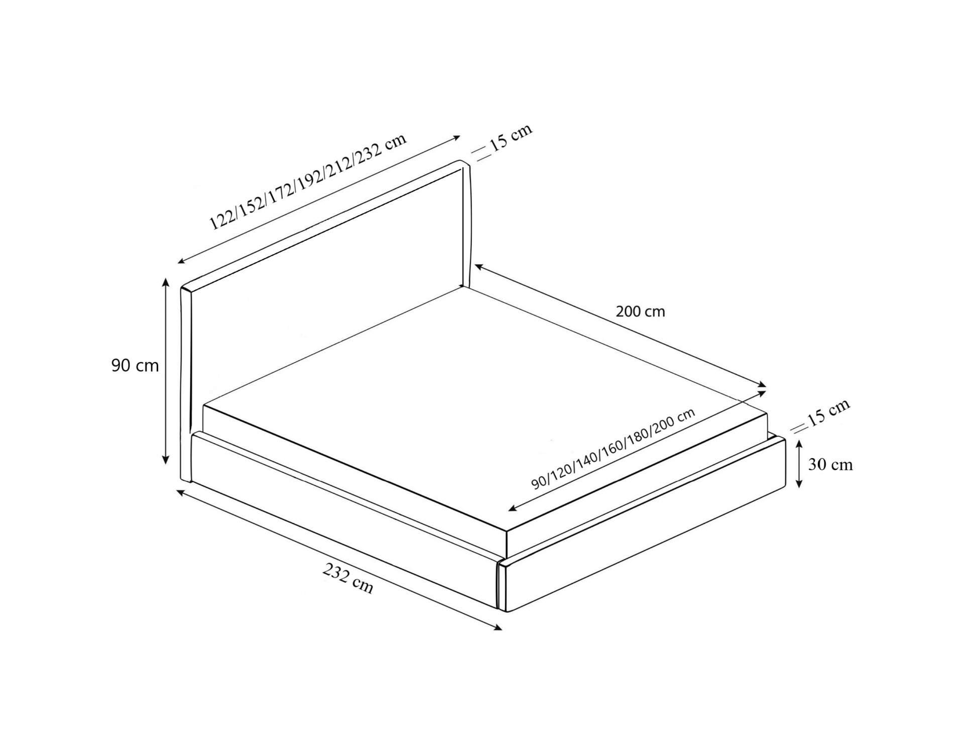 – szerokość całkowita 122/152/172/192/212/232 ( w zależności od wybranego rozmiaru)