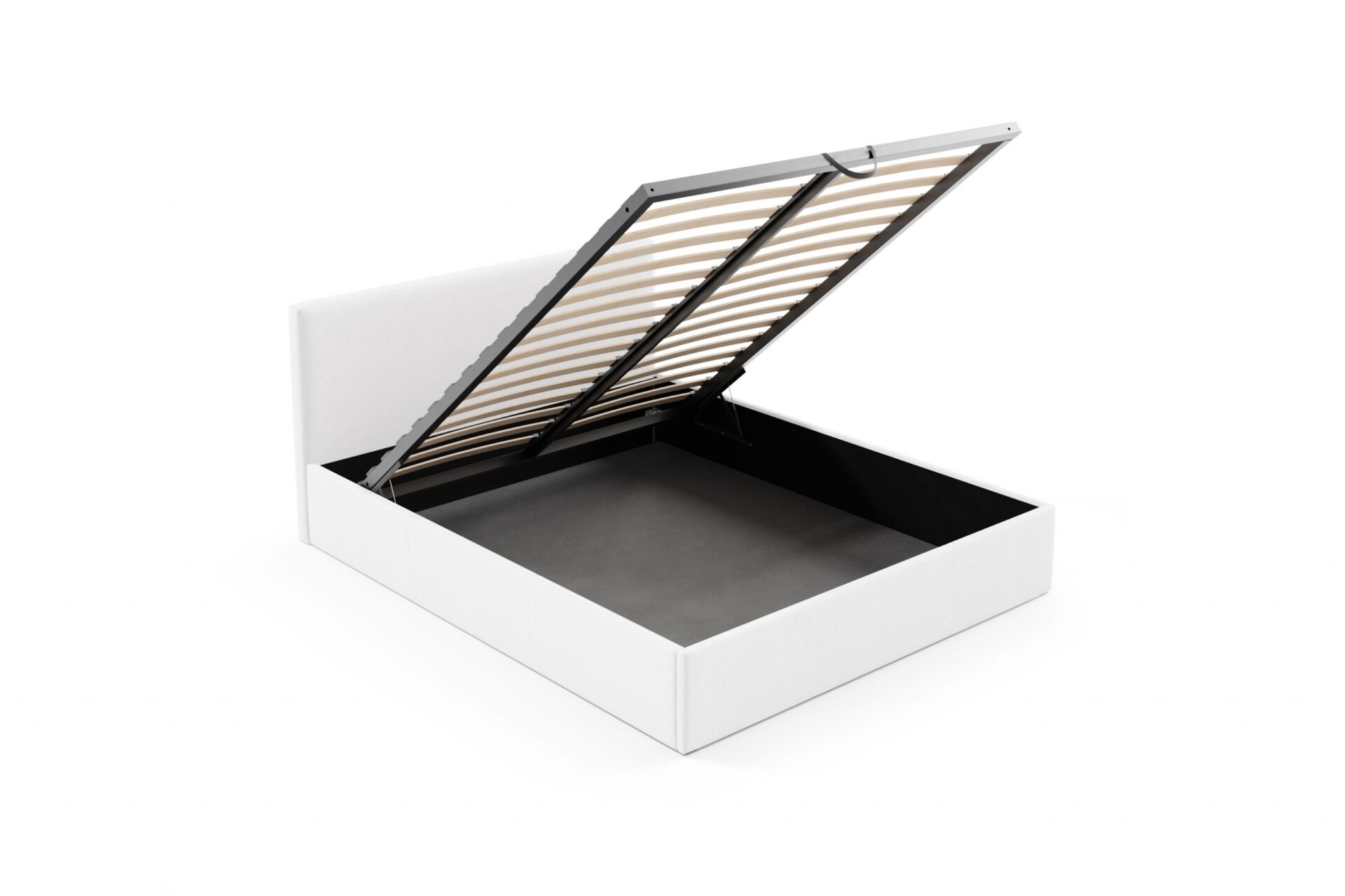 – podstawowy stelaż metalowy wyposażony jest w automaty/siłowniki gazowe o mocy 1000N i 34 listew drewnianych w komplecie (17 na stronę). W ofercie występuje opcja kupna stelaża WZMOCNIONEGO z 24 listwami na jednej stronie (48 listew w całym stelażu), którego nośność jest wyższa o ponad 100 kg, a sam materac dostosowuje się jeszcze lepiej do ciała ze względu na większą gęstość ułożenia listew sprężynujących