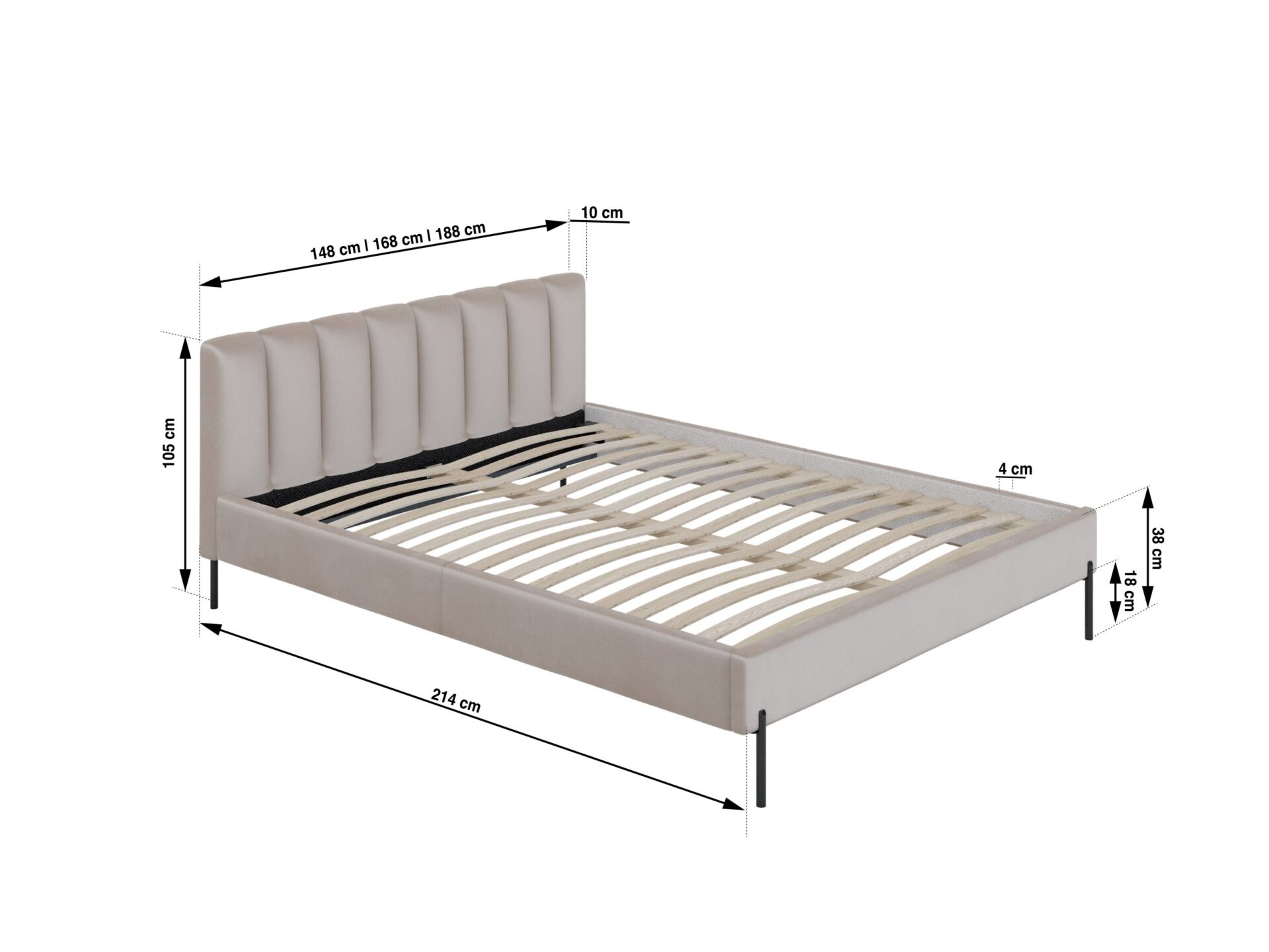 - Matratzenrahmen bestehend aus 32 elastischen Latten (16 pro Seite)