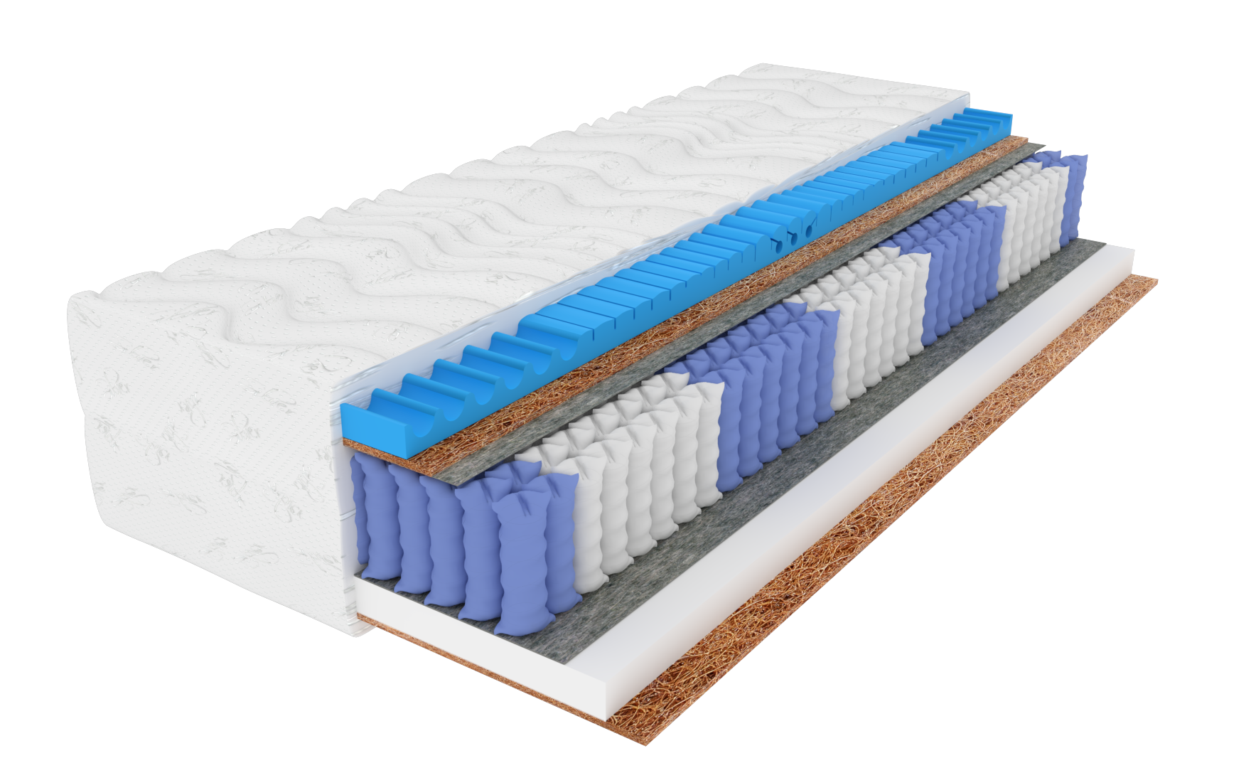 Die in Standard-Taschenmatratzen verwendeten Taschenfedern enthalten etwa 272 Federn/m2. Unsere Premium-Matratzen enthalten Taschenfedern des Multipocket-Typs, d.h. ca. 510 Federn/m2, was die Lebensdauer der Matratze erheblich beeinflusst und den Schlafkomfort erhöht, da es fast doppelt so viele Stützpunkte gibt.