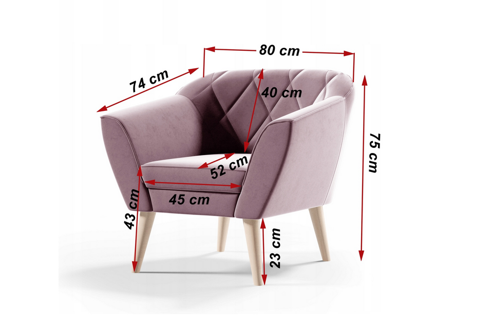 GINO armchair is a combination of functionality, comfort and great looks. The velour finish gives the whole piece a subtle shine that will enhance the fresh look of both a spacious living room and a cozy bedroom. The choice of armchair will satisfy the desires of customers who care about matching every element of the decor. Choose this particular model if you are looking for something classic, but extremely elegant and tasteful.