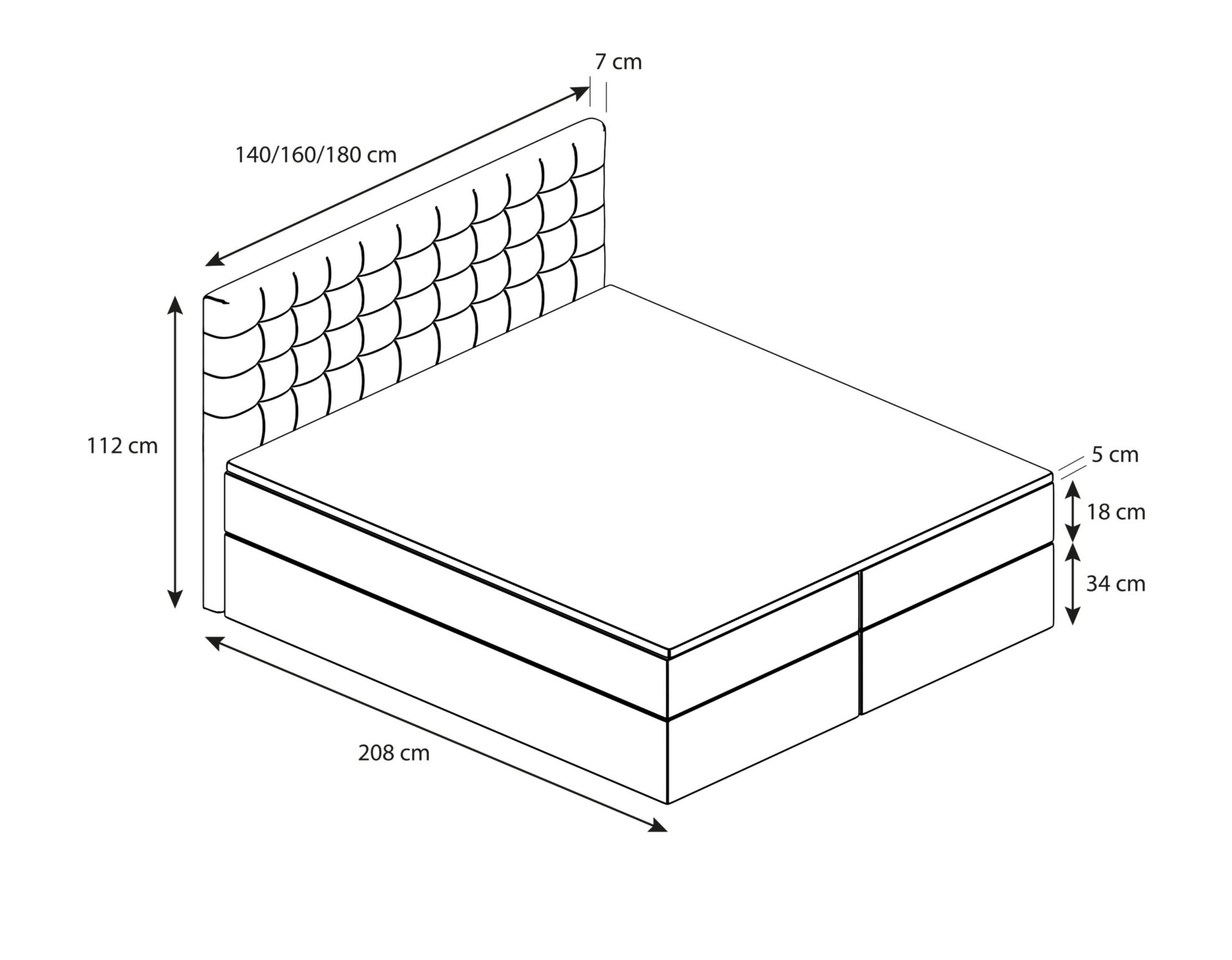 - total width 140/160/180 ( depending on the selected size)