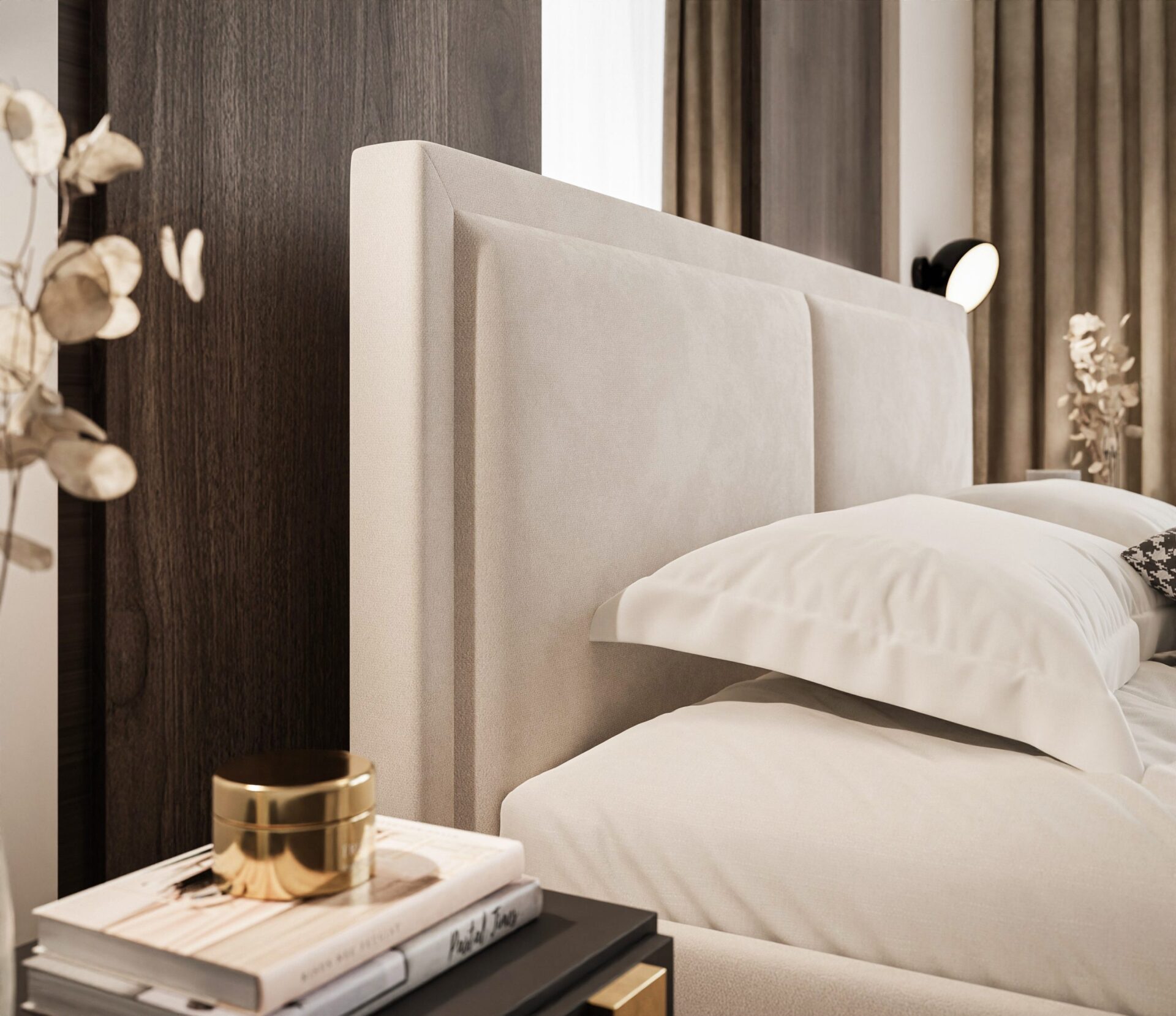 – wezgłowie łóżka z dwoma panelami tapicerowanymi