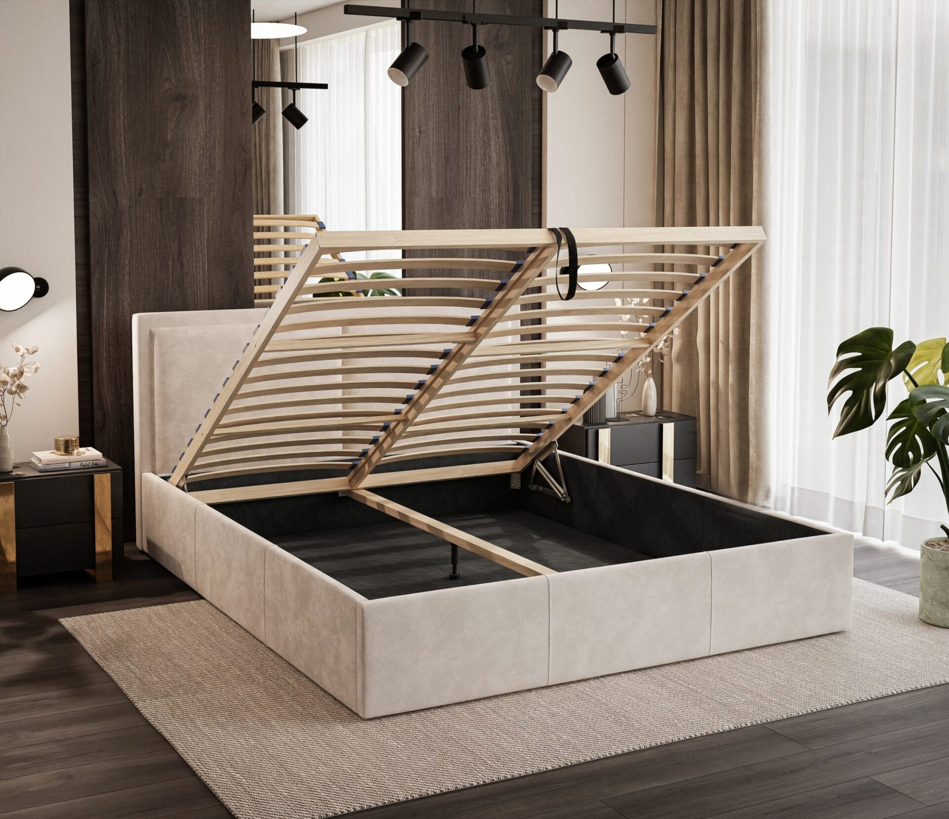 - metal frame (36 slatted) with gas cylinders for easy opening and closing of the bed