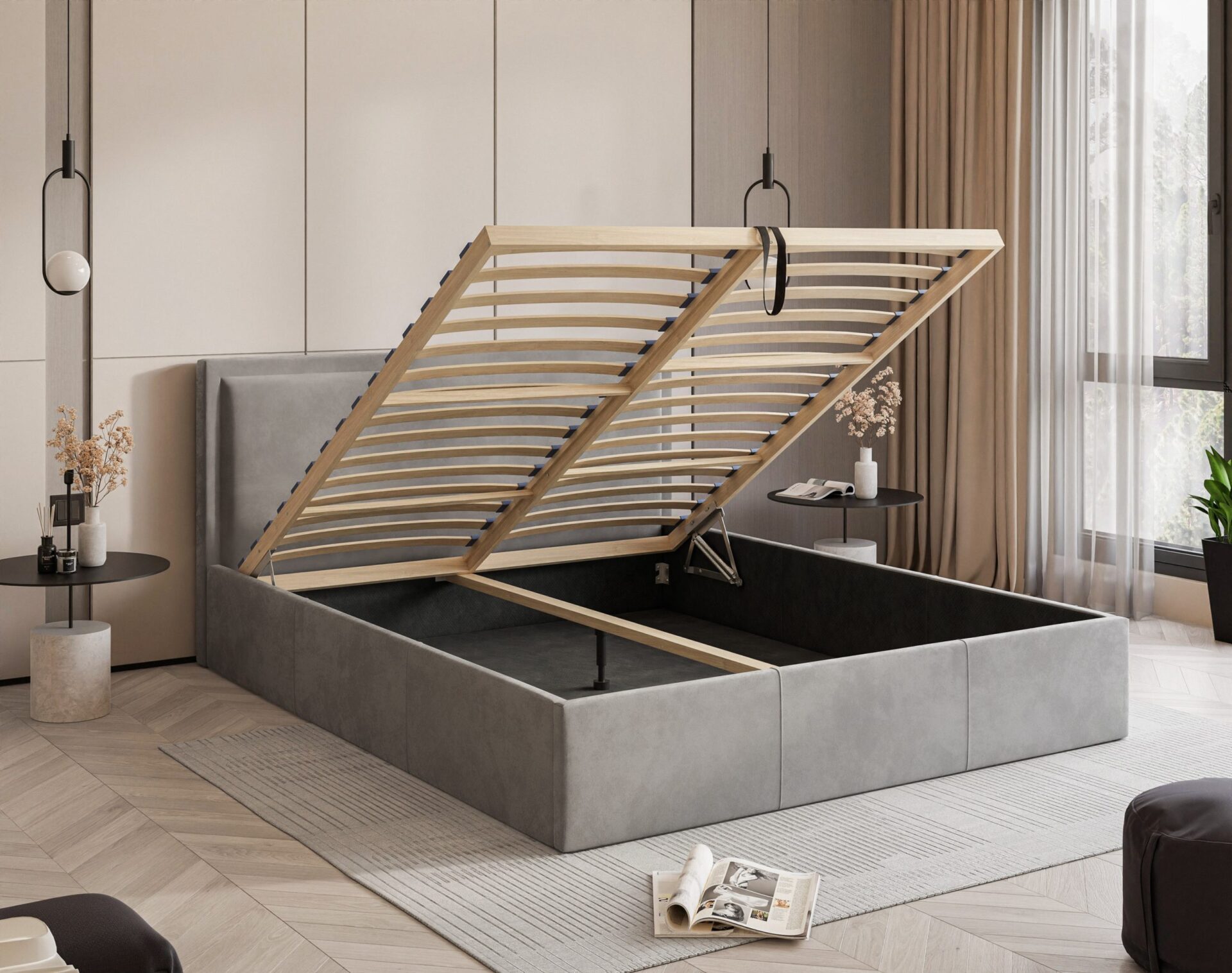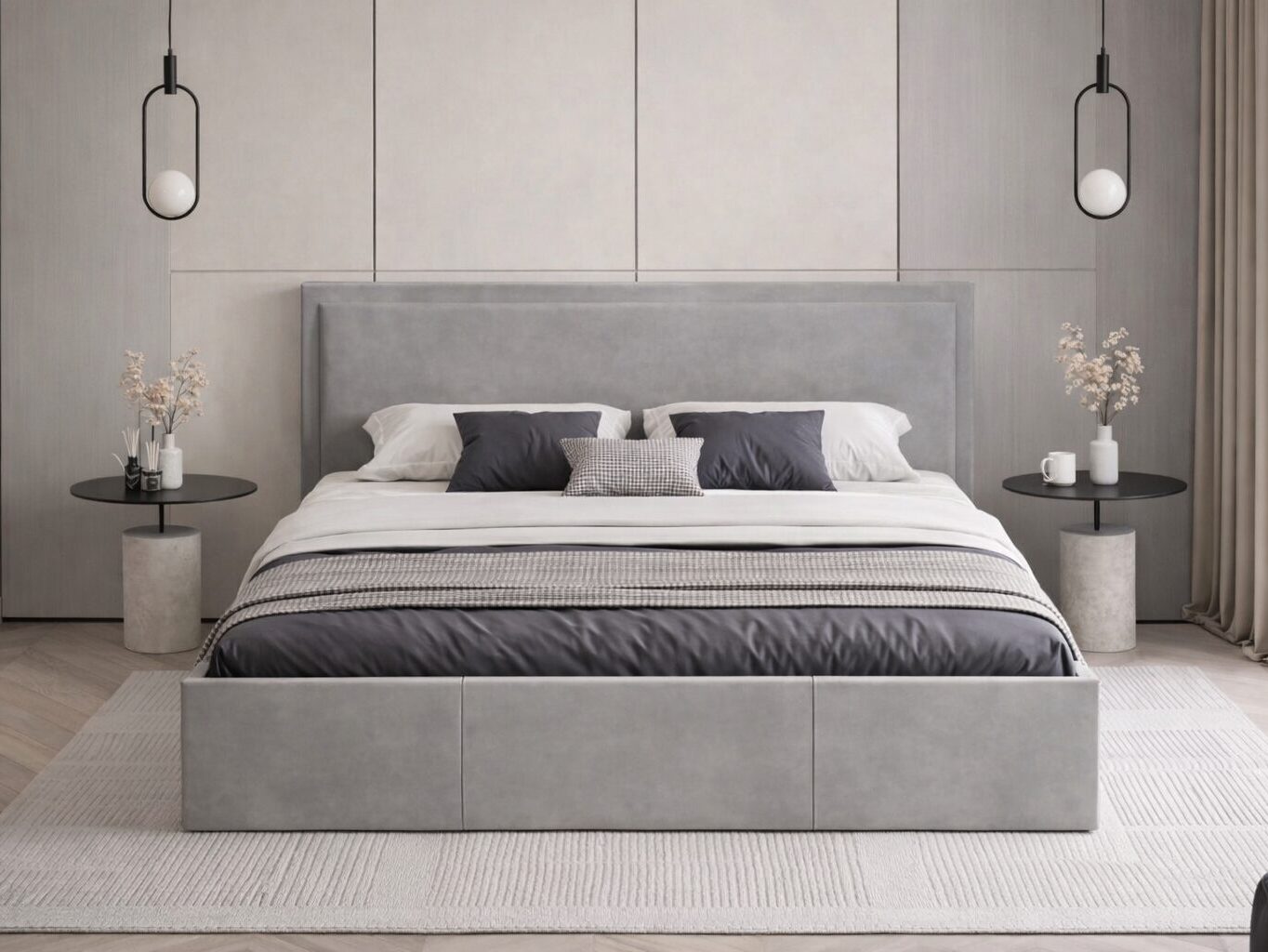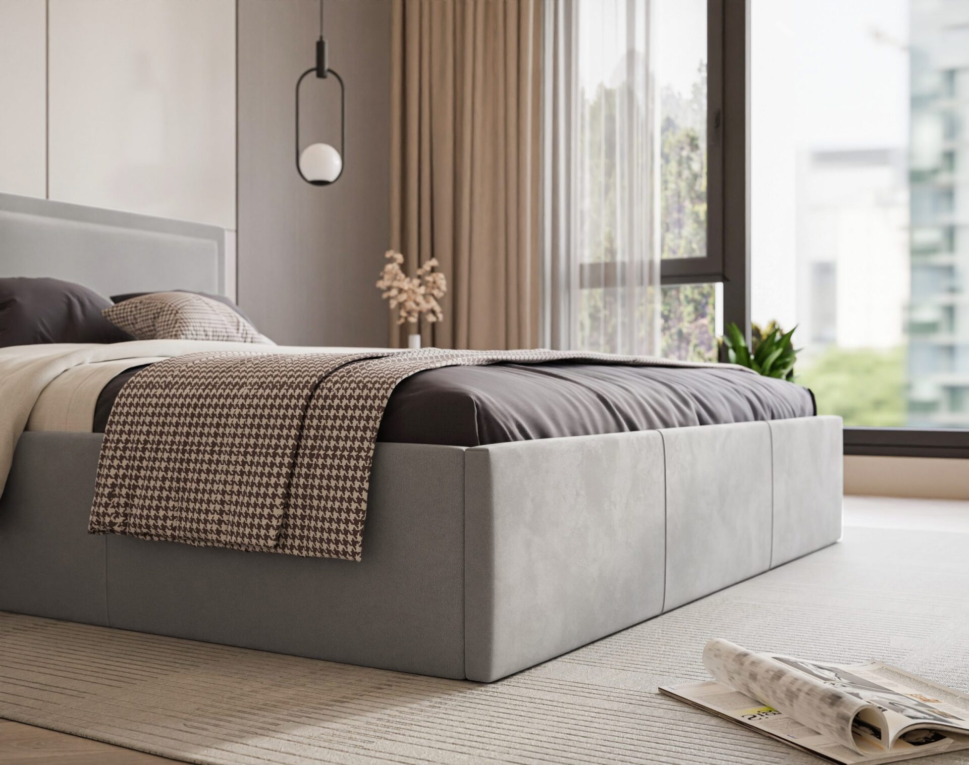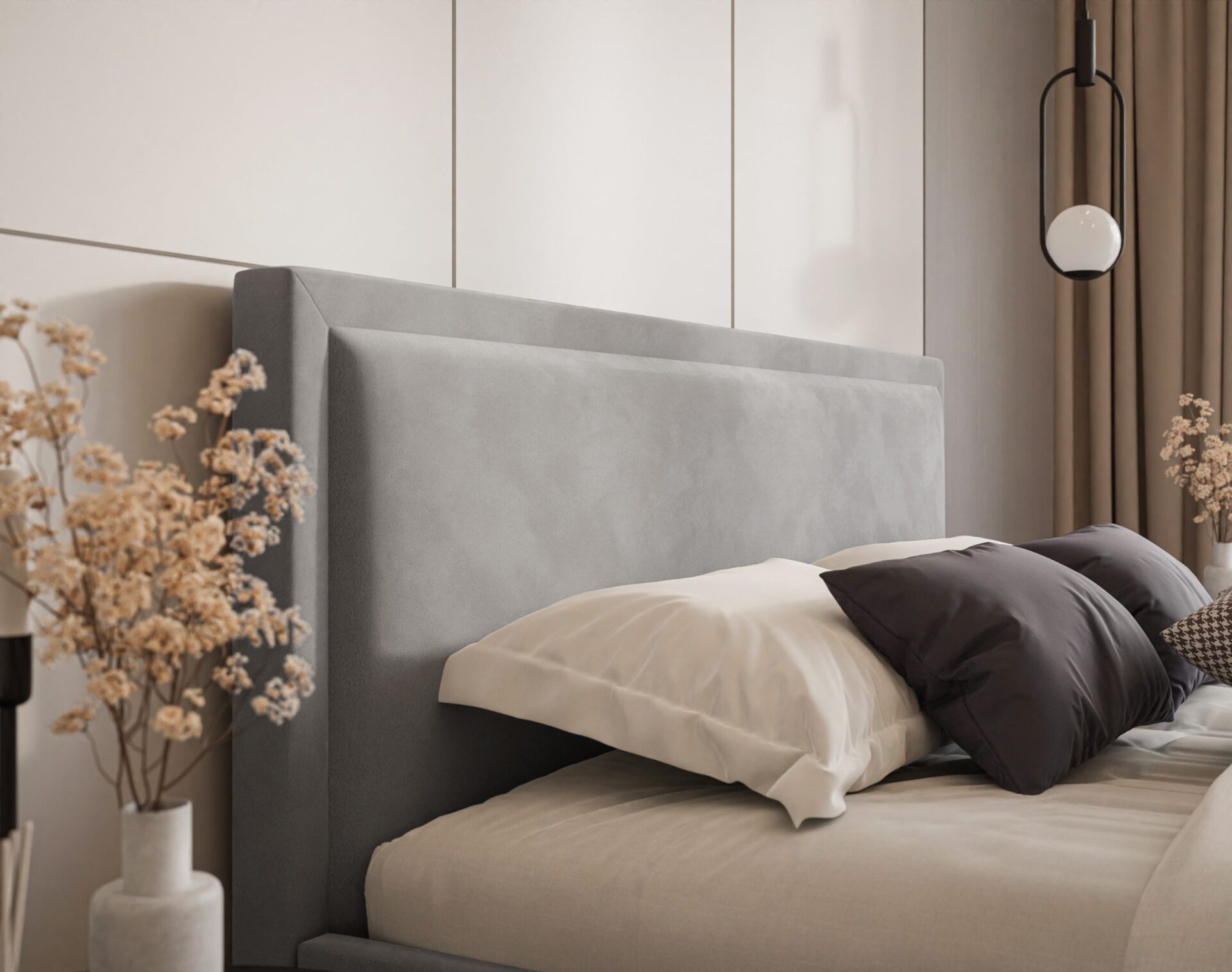 STELVIO bed was created for people who care about an elegant and impeccable bedroom design. The main distinguishing feature of the bed is the upholstered, convex framed upholstered panel, which will magnificently decorate your space. This unique model, will easily meet the needs of any, even the most demanding user, while subtly becoming a decoration of the place where you rest. A version of this product is equipped with a bedding container.