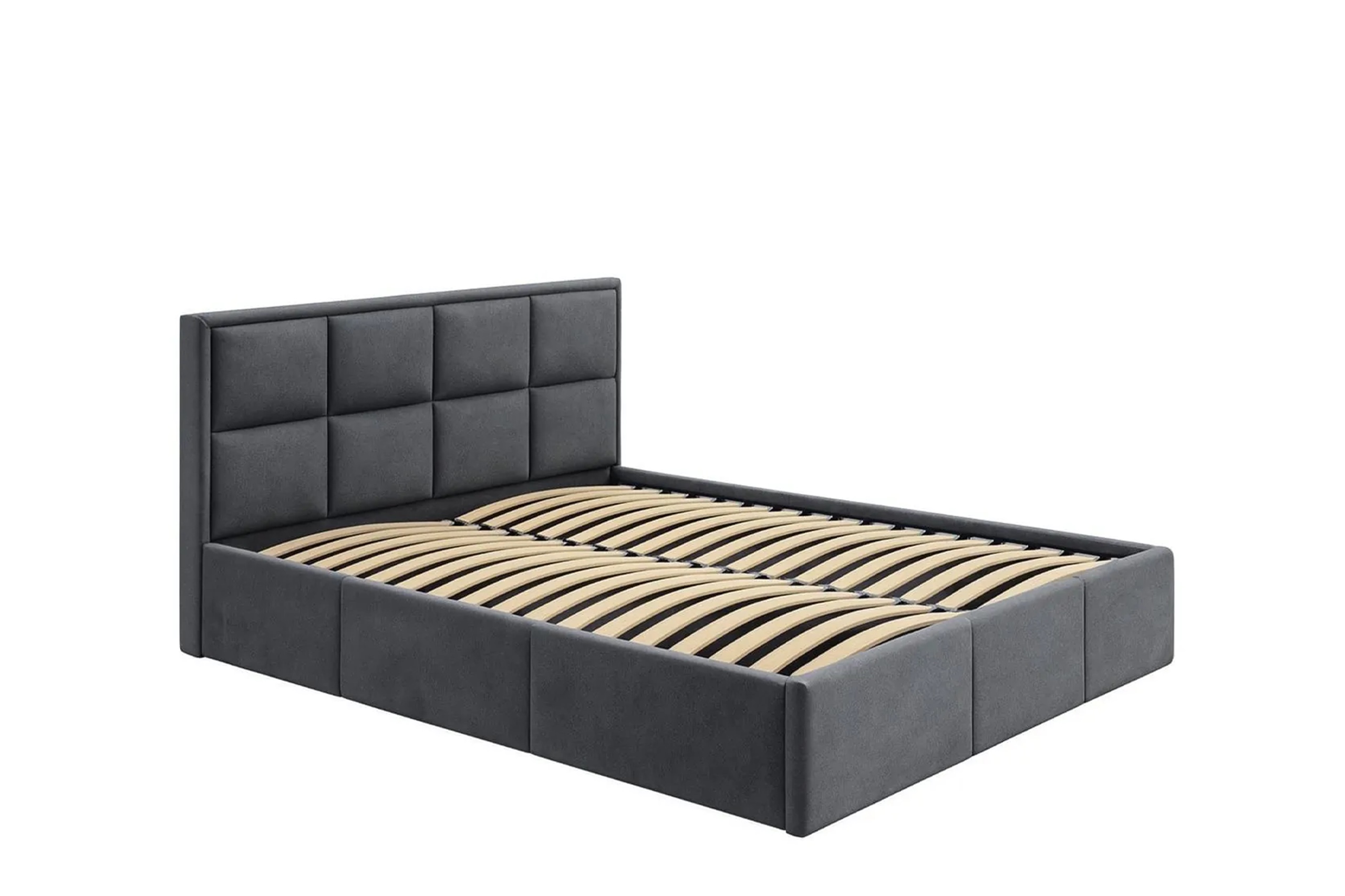 Łatwy dostęp zapewnia podnoszony stelaż pod materac. Zastosowane w nim siłowniki gazowe sprawiają, że nie trzeba wiele siły, aby unieść go do góry. Rama stelaża jest wykonana z metalu, natomiast sprężynujące listwy wyprodukowano z drzewa brzozowego, które umieszczono w plastikowych uchwytach. Takie rozwiązanie gwarantuje, że cała konstrukcja jest cicha i dobrze tłumi drgania przenoszone z łóżka. Odpowiednie rozłożenie listew na całej długości pomaga we właściwej wentylacji materaca.