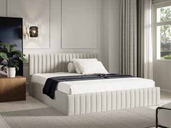 Łóżko Farmhouse to łóżko z pięknym wysokim wezgłowiem, które zbudowane zostało z pionowych paneli tapicerowanych dających efekt trójwymiarowego wybrzuszenia. Model ten został wykonany według projektu i na życzenie “Miedzy Modern a Farmhouse“.