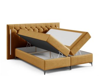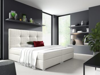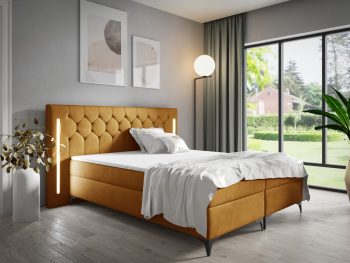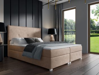 Łóżko kontynentalne RUMBA to luksusowe rozwiązanie do eleganckich wnętrz, prywatnych mieszkań i hoteli. Wysokiej klasy łóżko to idealny wybór dla każdego. Zaprojektowane i produkowane z najwyższą dbałością o detale. Łóżko przyciąga uwagę i zachwyca swoim nietuzinkowym wyglądem, w którym główną rolę odgrywa piękne wezgłowie. Łóżko zostało wykonane z wysokich jakościowo materiałów, posiada w standardzie materac bonellowy o bardzo wysokiej jakości.