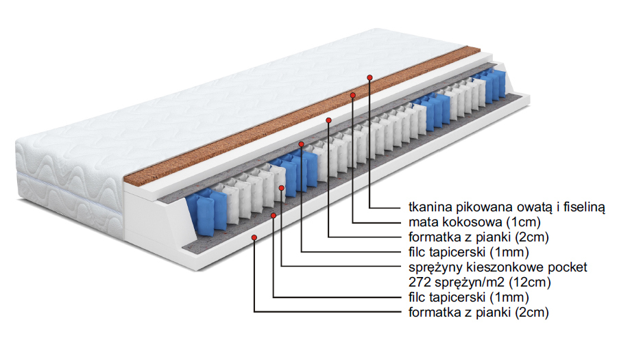 – sprężyny kieszonkowe pocket 272 sprężyn/m2 (12cm)